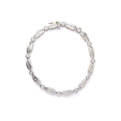 composed of alternating navette-shaped links set with baguette-cut diamonds and collet-set round brilliant-cut diamond connectors, modelled in 18ct gold