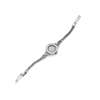 the circular dial with Arabic numerals, the bezel set with old round-cut diamonds and engraved detail, to a woven link bracelet with fold-over clasp