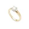 claw-set with a round brilliant-cut diamond, modelled in 18ct gold; with accompanying Gemological Institute of America report, numbered 13314346, dated 28.04.2004; stating that the diamond is 0.63cts, F colour, VS2 clarity, showing no fluorescence