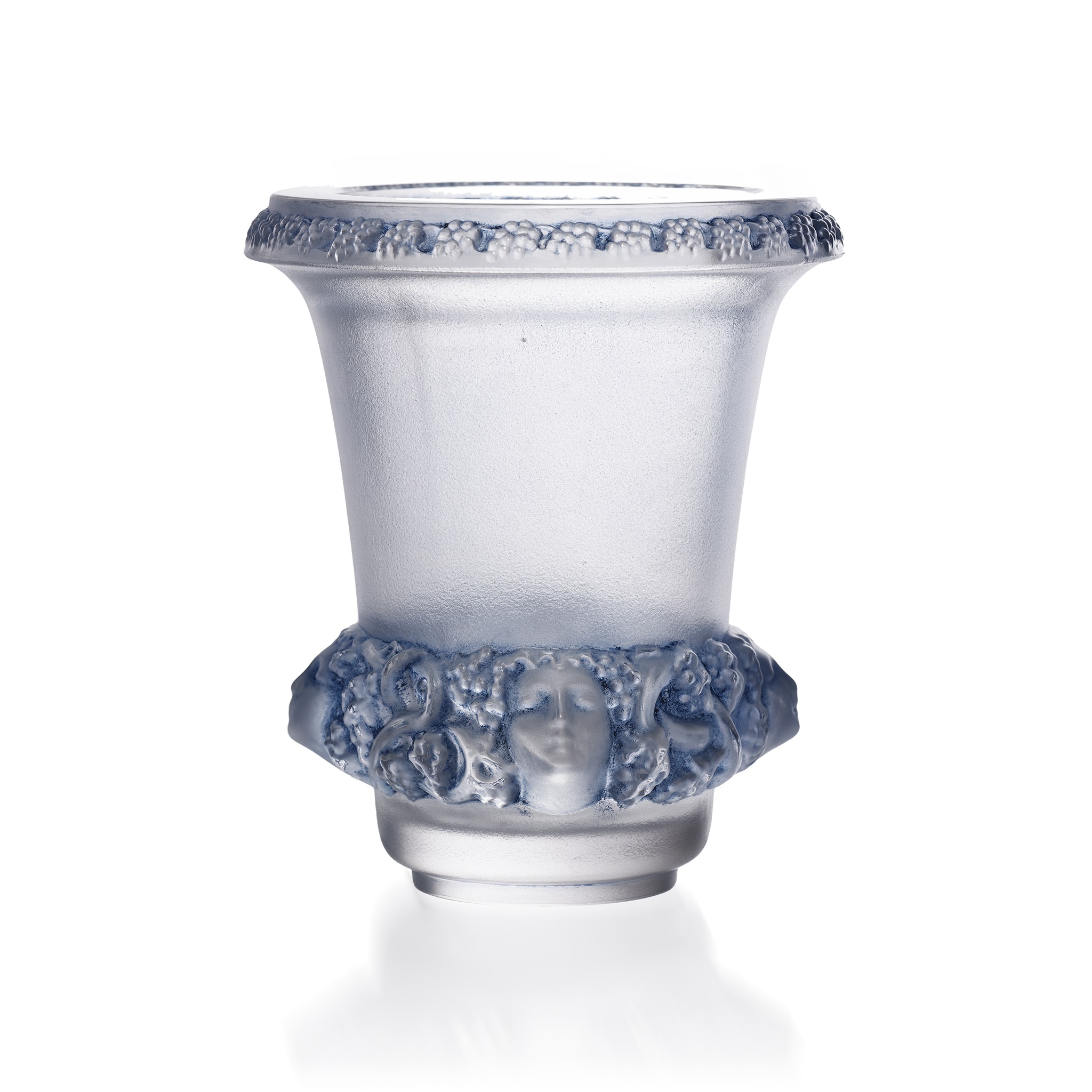 clear, frosted and blue stained