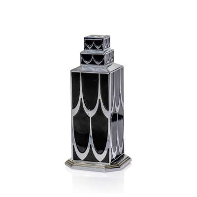 clear, frosted and black enamelled, white metal box