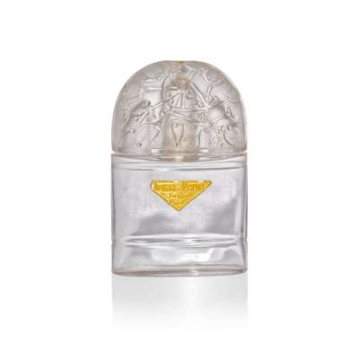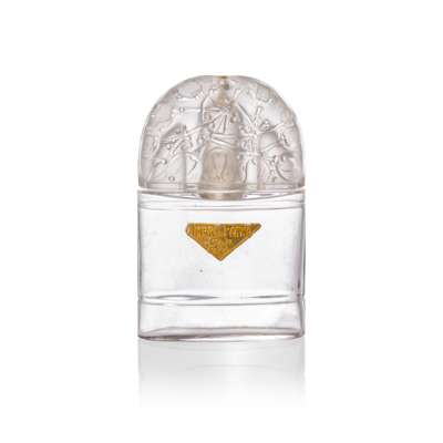 As with lot 88, the base was designed by André Joillevet in 1924 for Jean de Parys and the cover was a revised design by René Lalique from 1926. The earlier version of the cover not by Lalique does not have a relief moulded line running up the sides and over the cover.