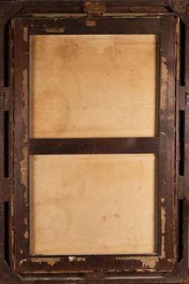 partial paper label with inscription (to reverse), oil on linen laid on board