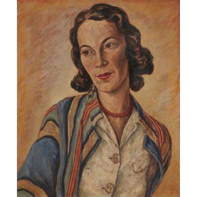 Fechenbach studied at the Academies of Art in Stuttgart, Munich, Florence and Vienna between 1919 and 1926. In 1939, fleeing the outbreak of World War Two, the painter emigrated to Buckinghamshire in England, where he continued to paint until his death. This portrait was executed in Oxfordshire.