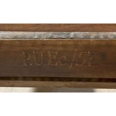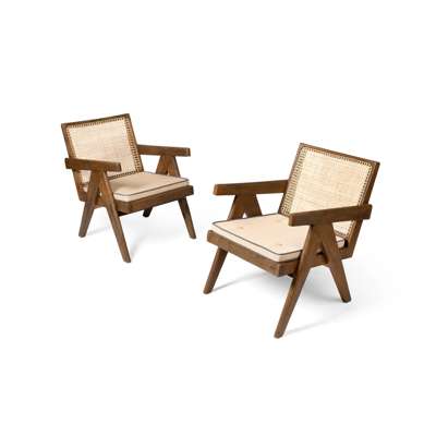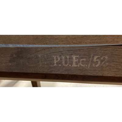 painted mark 'P.U.Ec./57' and 'P.U.Ec/52' (to seat rails), teak and cane