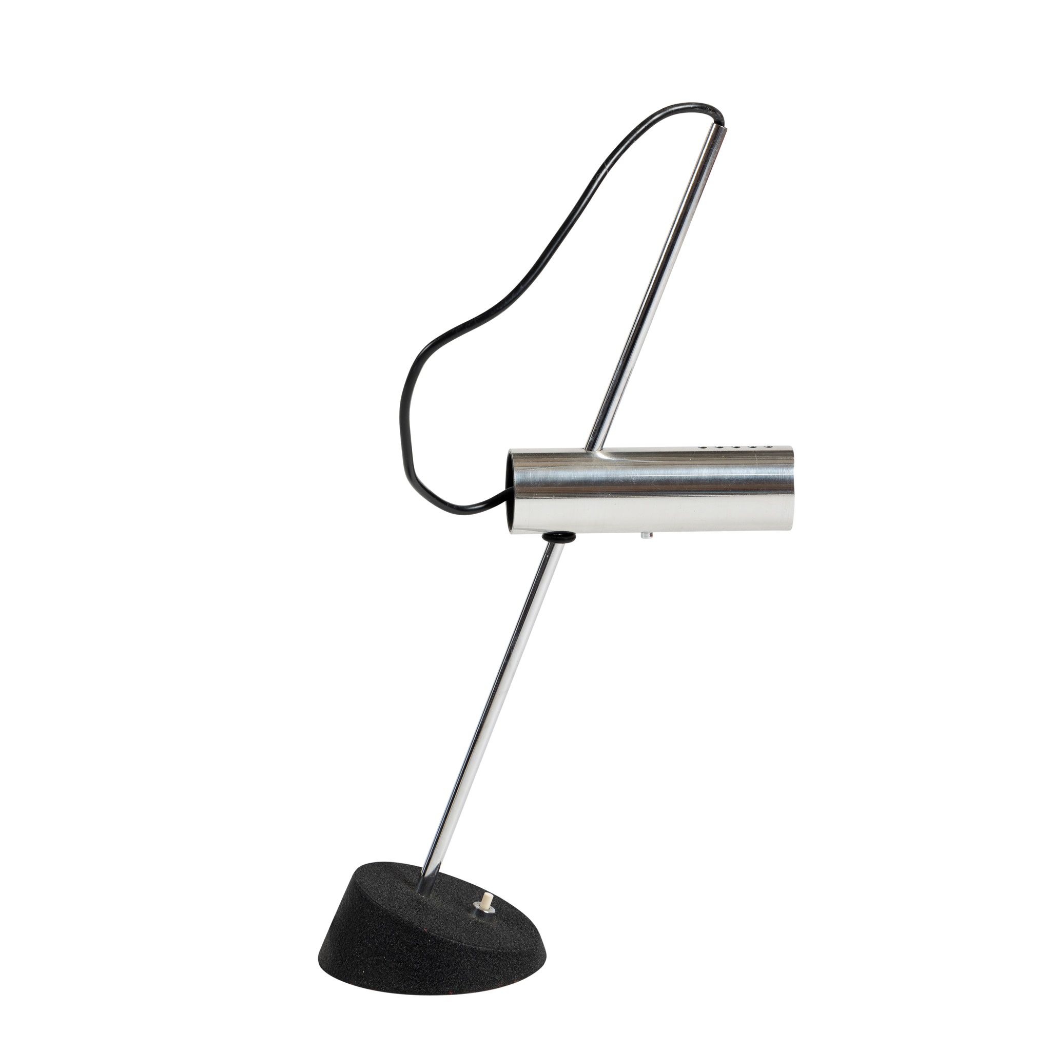 In model 566 Sarfatti recalled the principle that 'operational lamps must tilt the light source towards the user' and it was one of the first to use the Cornalux bulb, whose distinctive feature was the triangular light beam, considered by Sarfatti to be the most suitable for lighting a working space. It also had the added feature of making the wire part of the design. (Romanelli, p. 279)