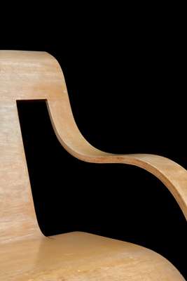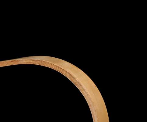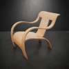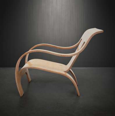 Summers had the ingenious vision to try and construct a chair from a single sheet of plywood. The form does not depend on any joins, pegging or connectors and has very little waste materials as its design primarily relies on simple incisions and mould bending.