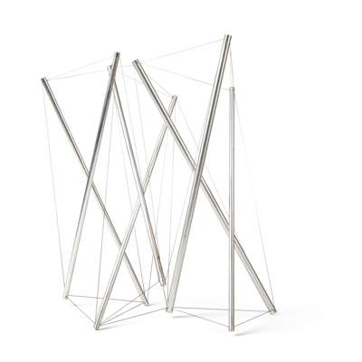 Kenneth Snelson's sculptures, thrusting skywards like towers and stretching out in extended cantilevers above the ground, can be found in museums and public parks around the world. Snelson's forms maintain the structure through the outward push of the compression tubes and inward pull of the tension cables.