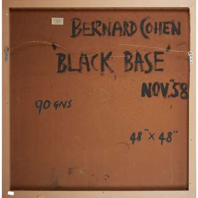 Bernard Cohen, alongside his brother Harold (see lot 283), was part of an exciting generation of artists that emerged from London’s art schools in the late 1950s and early 1960s. Whether abstract (Cohen, Robyn Denny, Richard Smith) or loosely figurative (Hockney, R. B. Kitaj, Allen Jones) these original young British artists were linked by their love of all things American – seeing New York, not Paris (as previous generations had), as the centre of the art world. They had first seen the new American painting up close in 1956, when Abstract Expressionism formed a small but significant part of a Tate Gallery survey as part of 20th Century American art. Three years later, the Tate mounted another exhibition, although this time dominated by abstraction and the work of the New York School. This show, however, was less of a revelation for the likes of Cohen and more a confirmation, as in the intervening years – in works such as Blake Base – he had already created a language of gestural abstraction of his own. What they took, instead, was the ambition and scale of American painting – and in the 60s, Cohen’s work would become vast and more minimal, with Kasmin’s legendary gallery on Bond Street really the only place it could be shown.