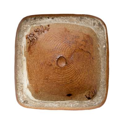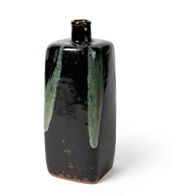 impressed artist's seal and date, stoneware, tenmoku with green splash