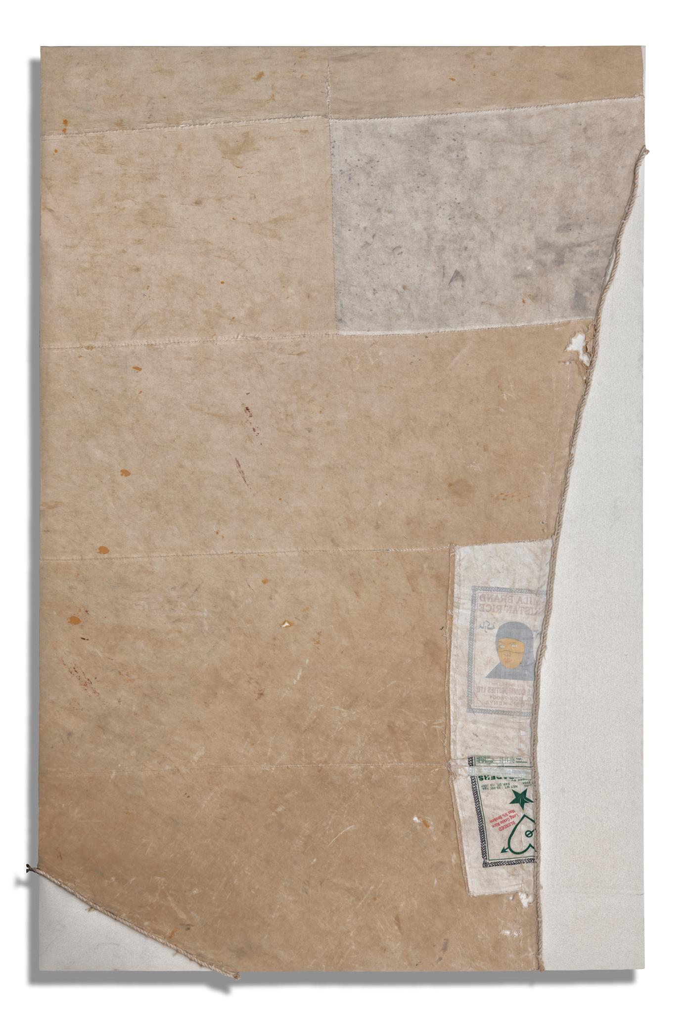Known for working with an assortment of found and altered fabrics, his textile works can include wool, cashmere, silk, burlap and hand-knitted swatches, that have been glued, bleached, painted, sewed and stretched in methods that play with the idiosyncrasies of the material. Jensen’s art works often incorporate a muted palette and gestural marks that combine the representational and the abstract.
