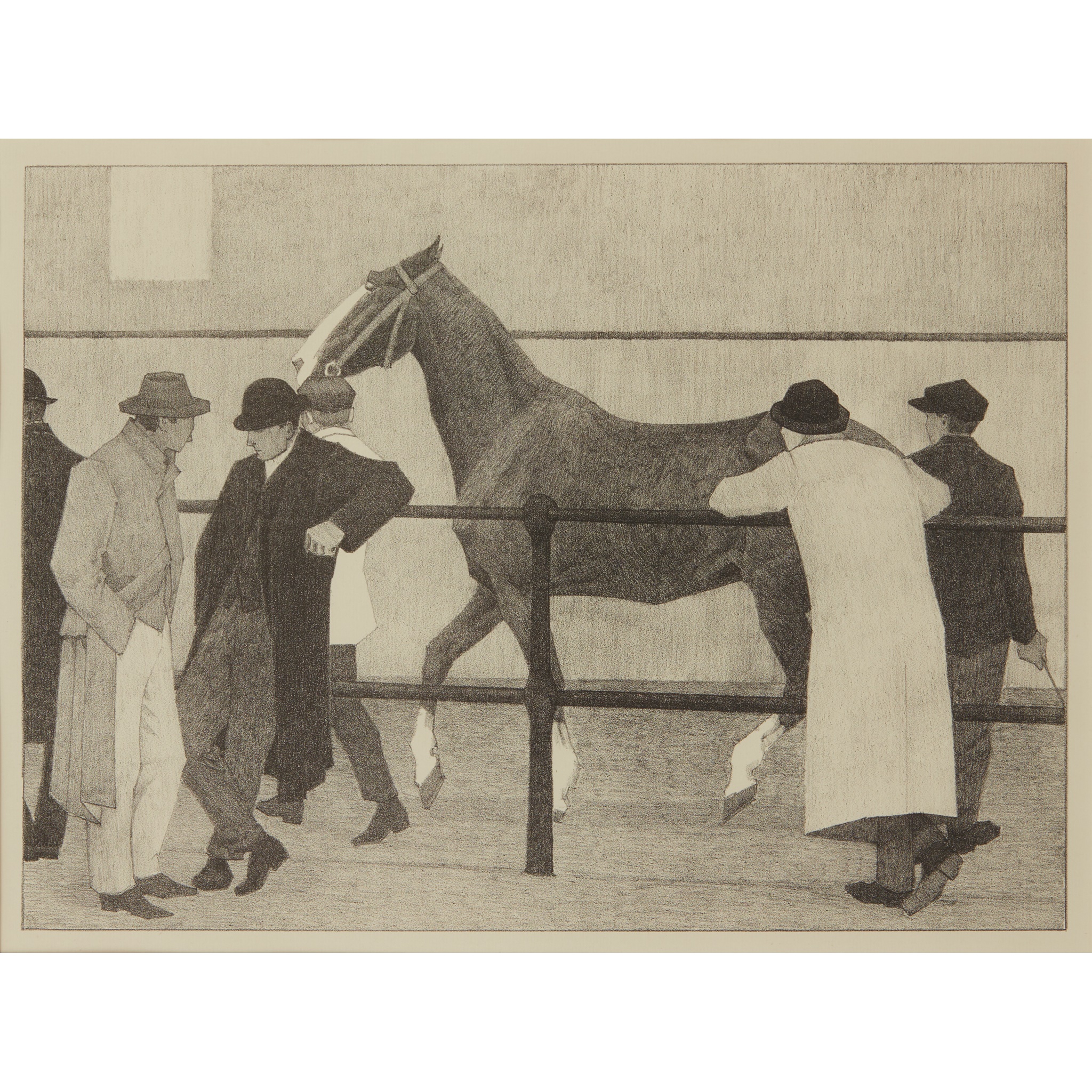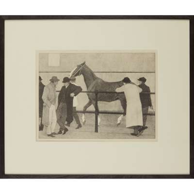 From an un-numbered edition of eighty plus three proofs. This work is also known as Ward's No.1. It is related to the oil painting Horse Dealers (Sale at Ward's Repository No.1) of 1918 which was purchased by Manchester Art Gallery in 1935 (acc.no.1935.157). Ward's Repository off the Edgward Road, London, was the first of the horse sale yards to close.