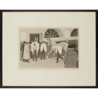 From an un-numbered edition of sixty-five plus two proofs. This work is based on the oil painting The Horse Mart of 1917-18, in the collection of the Yale Center for British Art (acc.no. B2001.2.110).