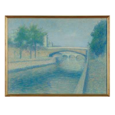 Note: This work appears to relate to a work in oil by Achille Laugé dated to 1920, depicting a similar viewpoint along the Seine in Paris, which sold at Sotheby's London on 25 June 2002 (Lot 215).
