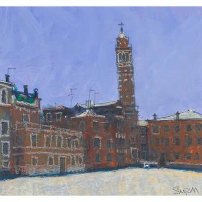 'Leaning Tower Venice', signed lower right, oil on board;