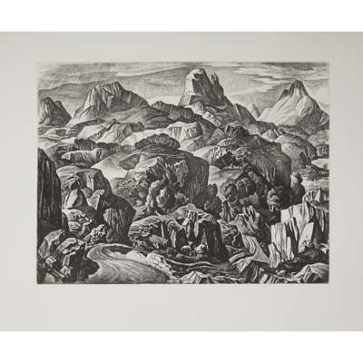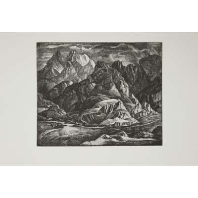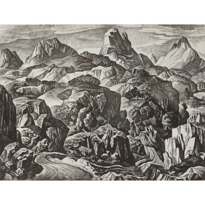 Arguably the most compelling work produced over William Wilson’s varied career was his etchings. In his youth Wilson cultivated his eye for composition while apprenticed to the stained glass firm James Ballantyne & Son. He later attended evening classes at Edinburgh College of Art, where he was introduced to printmaking by Adam Bruce Thomson. A 1932 Carnegie Travelling Scholarship from the Royal Scottish Academy enabled him to travel to France, Spain, Italy and Germany, where he developed many of the compositions in the present edition.