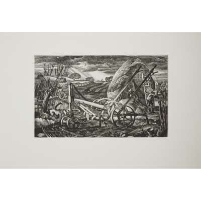 Arguably the most compelling work produced over William Wilson’s varied career was his etchings. In his youth Wilson cultivated his eye for composition while apprenticed to the stained glass firm James Ballantyne & Son. He later attended evening classes at Edinburgh College of Art, where he was introduced to printmaking by Adam Bruce Thomson. A 1932 Carnegie Travelling Scholarship from the Royal Scottish Academy enabled him to travel to France, Spain, Italy and Germany, where he developed many of the compositions in the present edition.