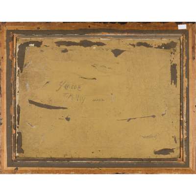 Signed lower left, inscribed to backboard verso, watercolour on card