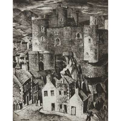 Etching, and another, 'Welsh Castle', etching, signed in plate