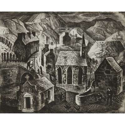 Etching, signed in plate, and another, 'Welsh Village', etching