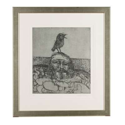 Note: Inspired by the poem 'On a Raised Beach' by Hugh MacDiarmid. Part of the series of prints known as the 'Addenbrokes series', named after the hospital in Cambridge where Bellany underwent a major operation.