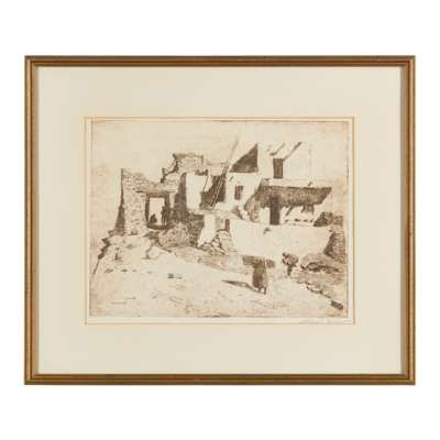 Signed to margin lower right, inscribed 'Walpi, Arizona' in reverse to plate, etching and drypoint