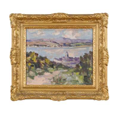 Note: Study for 'Gourock from Tower Hill' (1940s), oil on canvas, in the collection of Wardlaw Museum, St. Andrews.