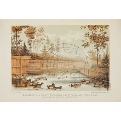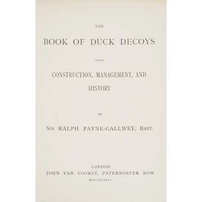 Payne-Gallwey, Sir Ralph. The Book of Duck Decoys. London: John van Voorst, 1886. Large 8vo, colour frontispiece, and 13 colour plates (two folding), original green cloth gilt (3)