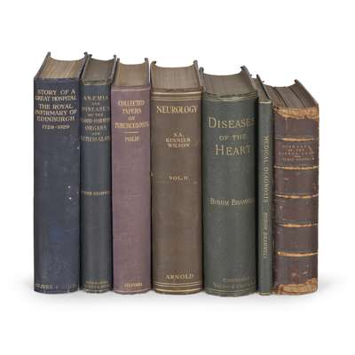 Logan Turner, A. Story of a Great Hospital. The Royal Infirmary of Edinburgh 1729-1929. Edinburgh, 1937, original cloth (15 books, 1 wooden shield)