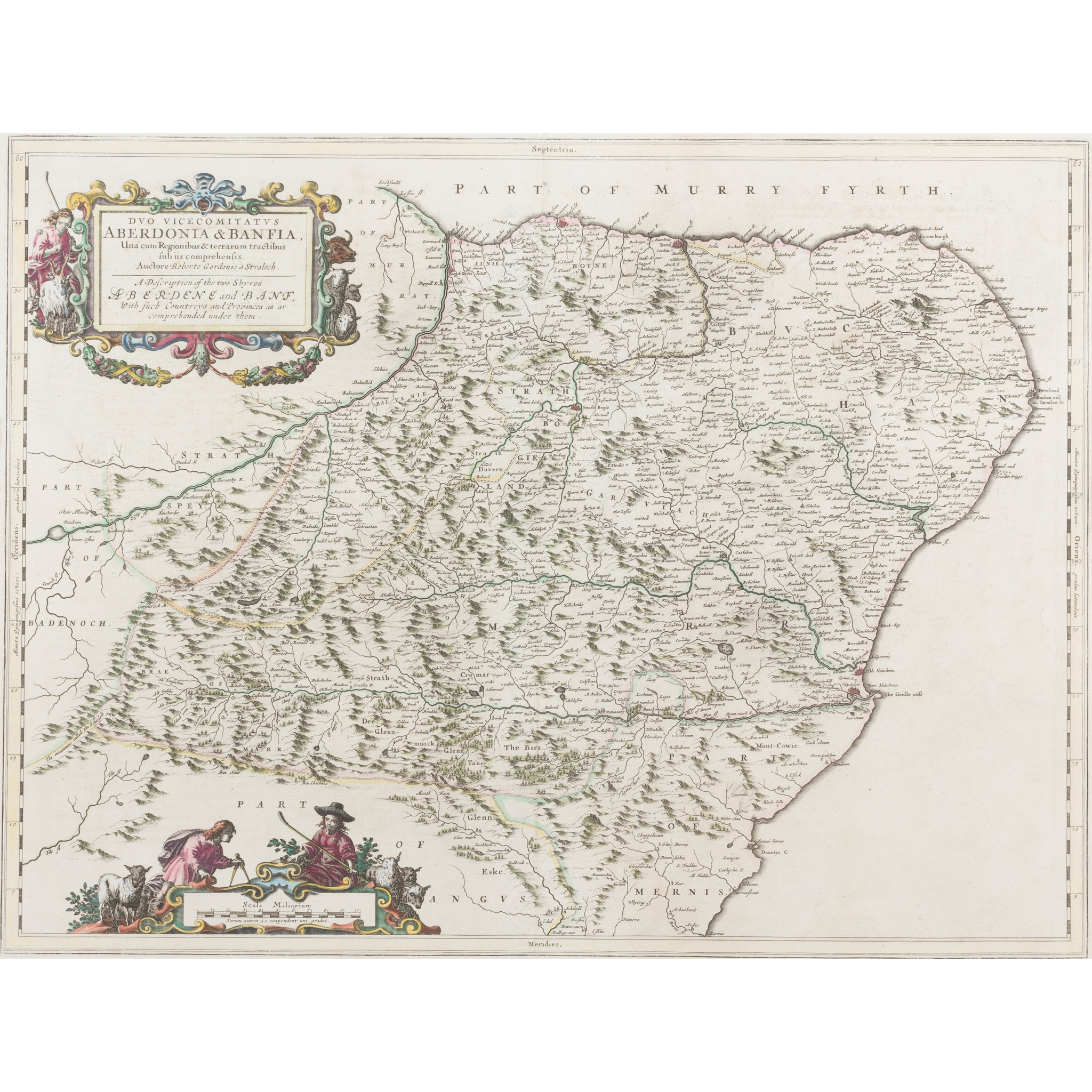 Blaeu. Duo Vicecomitatus Aberdonia & Banfia, 59 x 46cm, hand-coloured in outline;