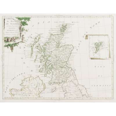 Zatta, Antonio. Il Regno di Scozia, Venice, 1776, 42x 32.5cm, hand-coloured in outline; Scotland, or North Britain, [n.p., n.d.], 22 x 27cm, hand-coloured in outline;