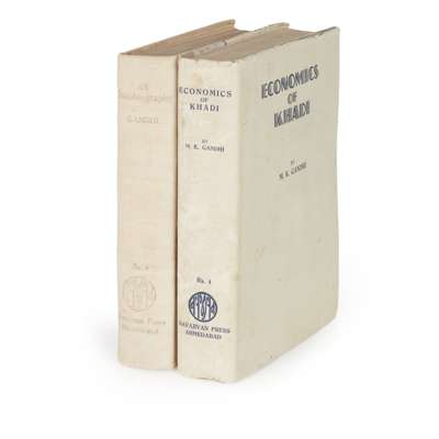Economics of Khadi. Ahmedabad: Navajivan Press, 1941. First edition, 8vo, original cloth-backed boards, dustwrapper, dustwrapper very slightly faded and very slightly rubbed at head of spine;
