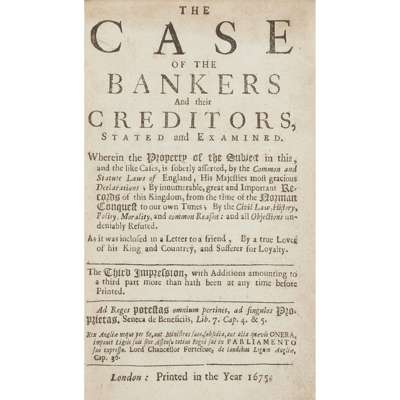 Stated and Examined. London: [no publisher], Printed in the year 1675. The third impression, with additions, [ESTC R217081], 8vo, [x], 148; presentation copy inscribed on front endpaper facing title "This, for my honoured freind Sr Humphrey Brigges Baronet, from the Author with his Love and Service", contemporary calf, rubbed, upper cover detached, armorial bookplate of Corbet Corbet and later bookplate of Richard Corbet of Adderley