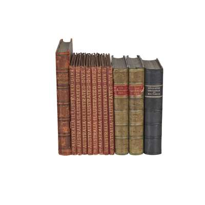 Booth, Edwin Carton. Australia. London: Vertue. 1873, 8 original parts, 4to, 2 engraved title-pages, 111 engraved plates and 8 coloured maps, original pictorial brown cloth gilt, contents loose, rubbed;
