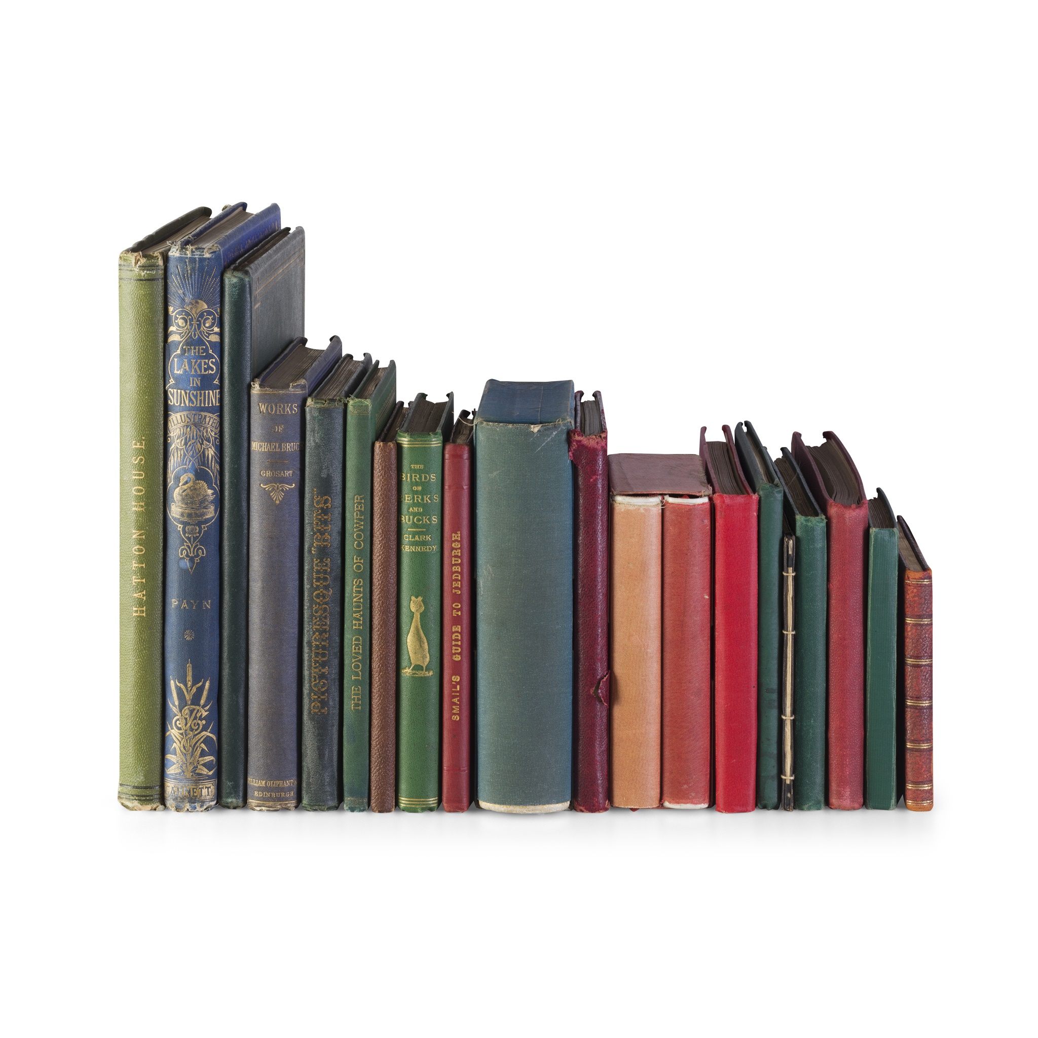 and 11 others, including George Eliot, Romola, two editions, William Blackwood, c.1880?, and Tauchnitz, 1863 (2 volumes), both in decorative japon bindings and illustrated with albumen prints of Florence, with cloth dust jackets and slipcases; album of 22 hand-coloured albumen prints of Japanese scenes and 'types', c.1870?, album of albumen prints of Pompeii; W. Lawrence, Photographs of Irish Scenery: The Lakes of Killarney, c.1870; James Watson, Smail's Guide to Jedburgh and Vicinity, 1880, fourth edition; and similar (19)