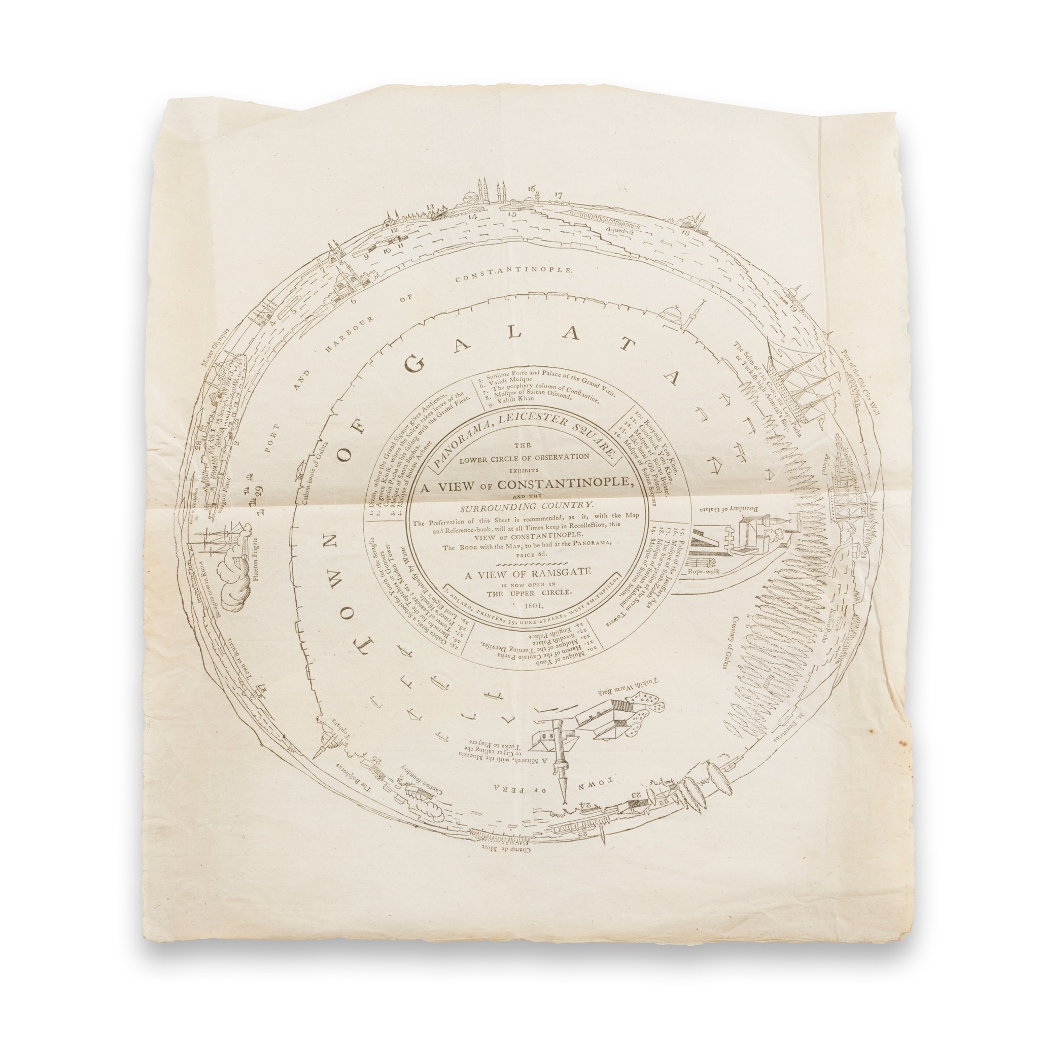 Panorama, Leicester Square. The Lower Circle of Observation exhibits a View of Constantinople and the Surrounding Country. Westminster: [R. Barker], printed by J. Adlard, 1801. Broadside, 370 x 313mm