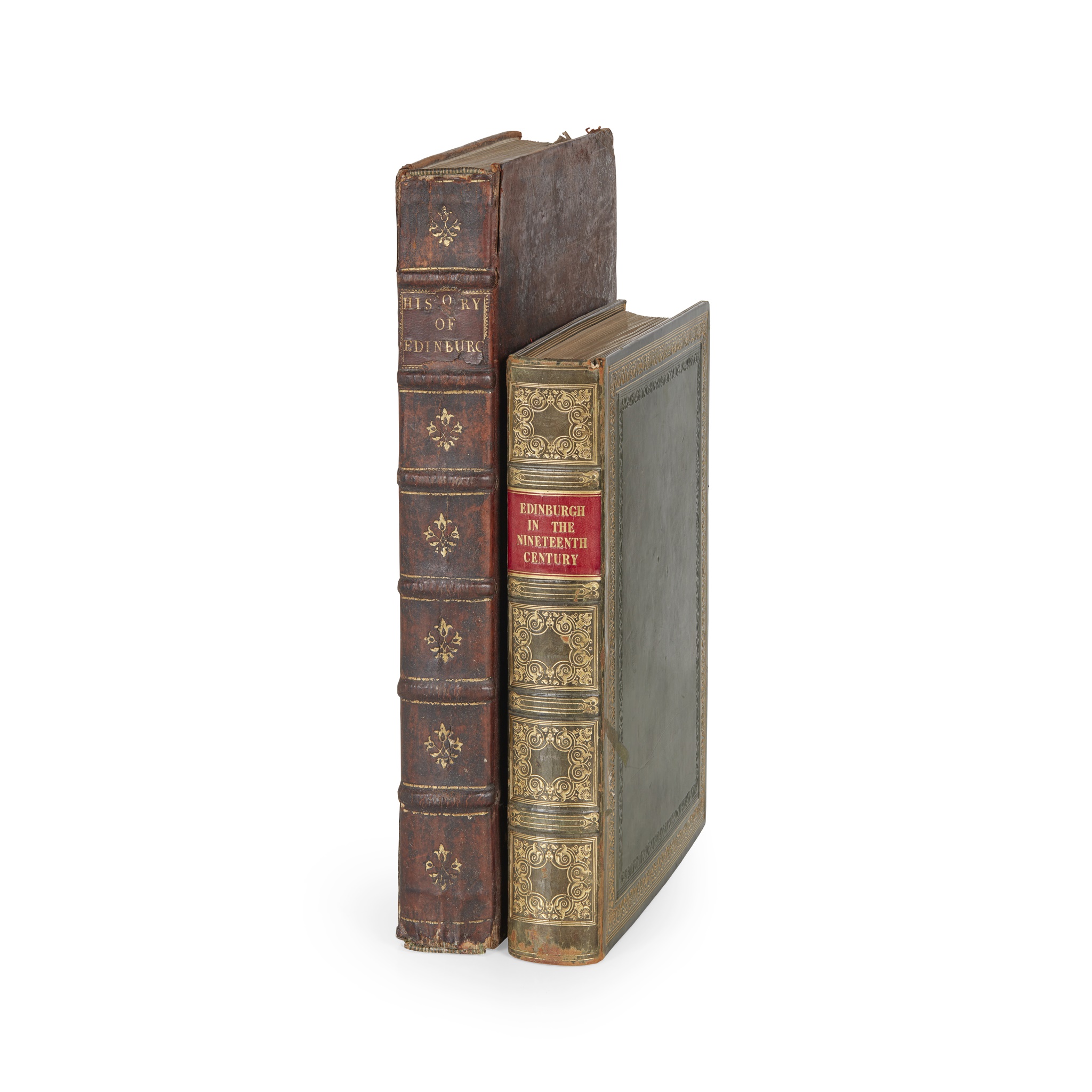 Maitland, William. The History of Edinburgh from its Foundation to the Present Time. Edinburgh: Hamilton, Balfour & Neil. 1753. First edition, folio, large folding plan and 20 engraved plates, contemporary full dark brown calf, backstrip in panels, red label, leather strip torn from front cover, head and tail of spine worn;