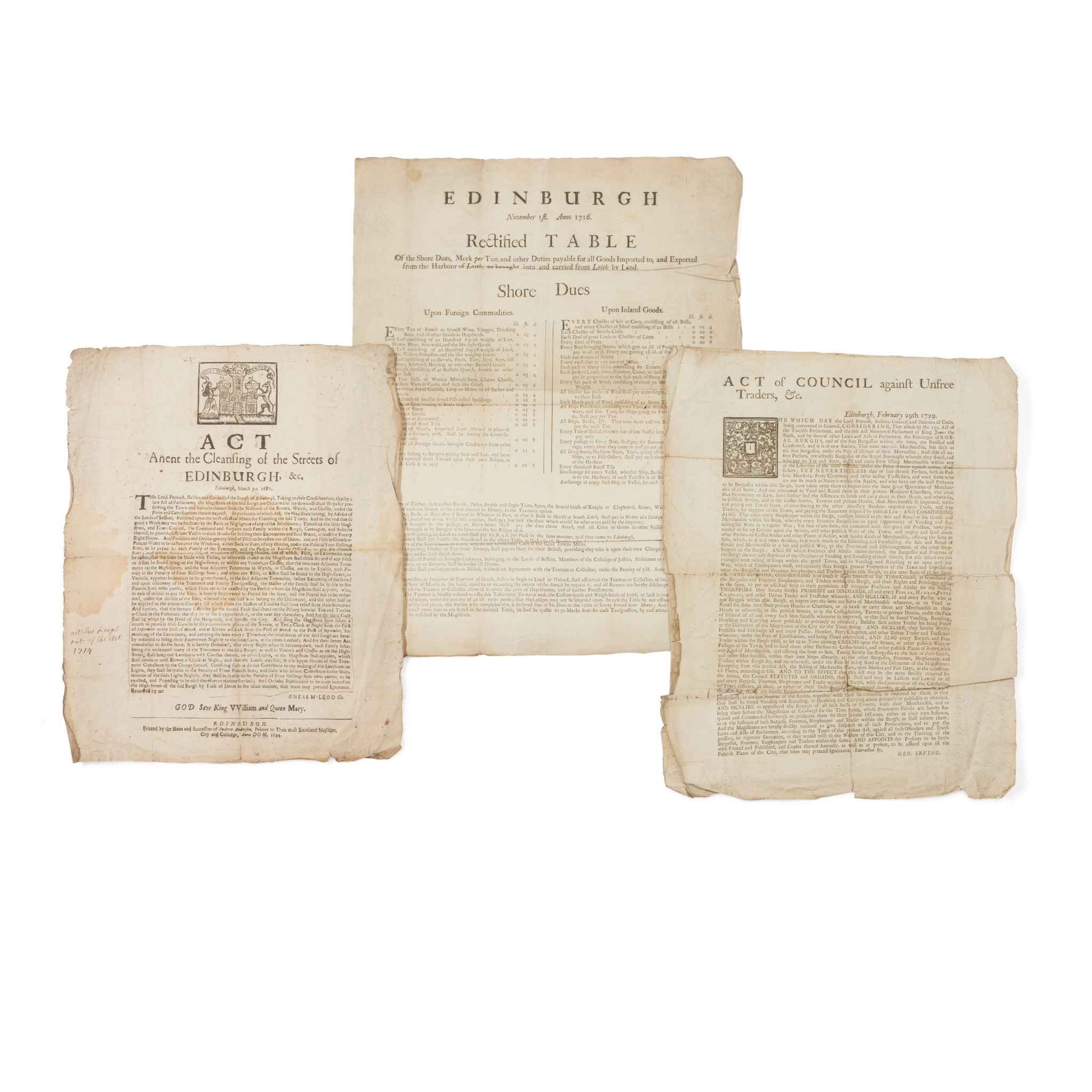 Act anent the Cleansing of the Streets of Edinburgh, &c. Edinburgh, March 30, 1687. Edinburgh: Andrew Anderson, 1694, 48 x 31cm, [ESTC R174857, NLS copy stained and creased with loss of text];