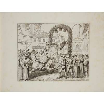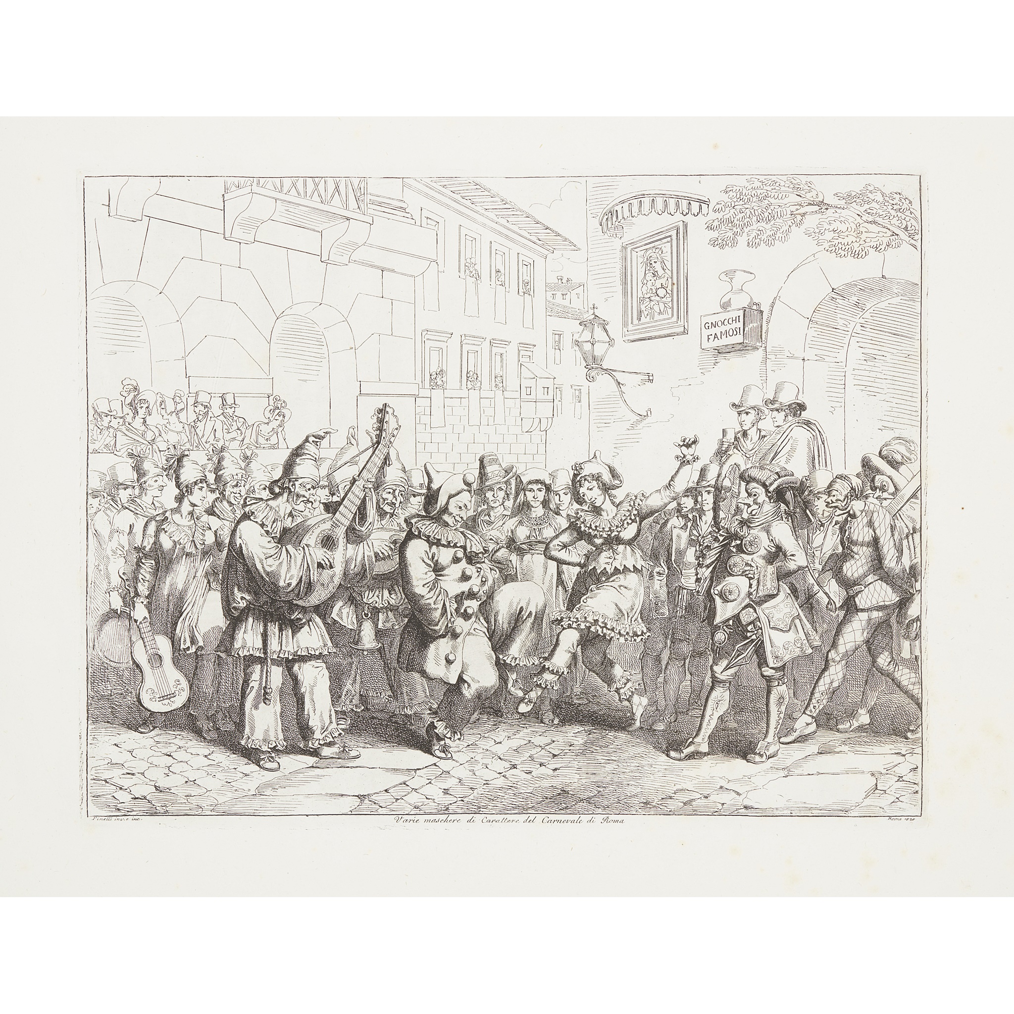 Idem. Nuova raccolta di cinquanta costumi pittoreschi. Rome: Giovanni Scudellari, 1817. First edition, oblong 4to (16.2 x 21.2cm), contemporary maroon half morocco gilt, etched title-page, 49 etched plates (of 50: lacking plate 38), contemporary ownership inscription 'David Dundas' (by family repute the British army officer Sir David Dundas, 1735-1820), occasional spotting (2)