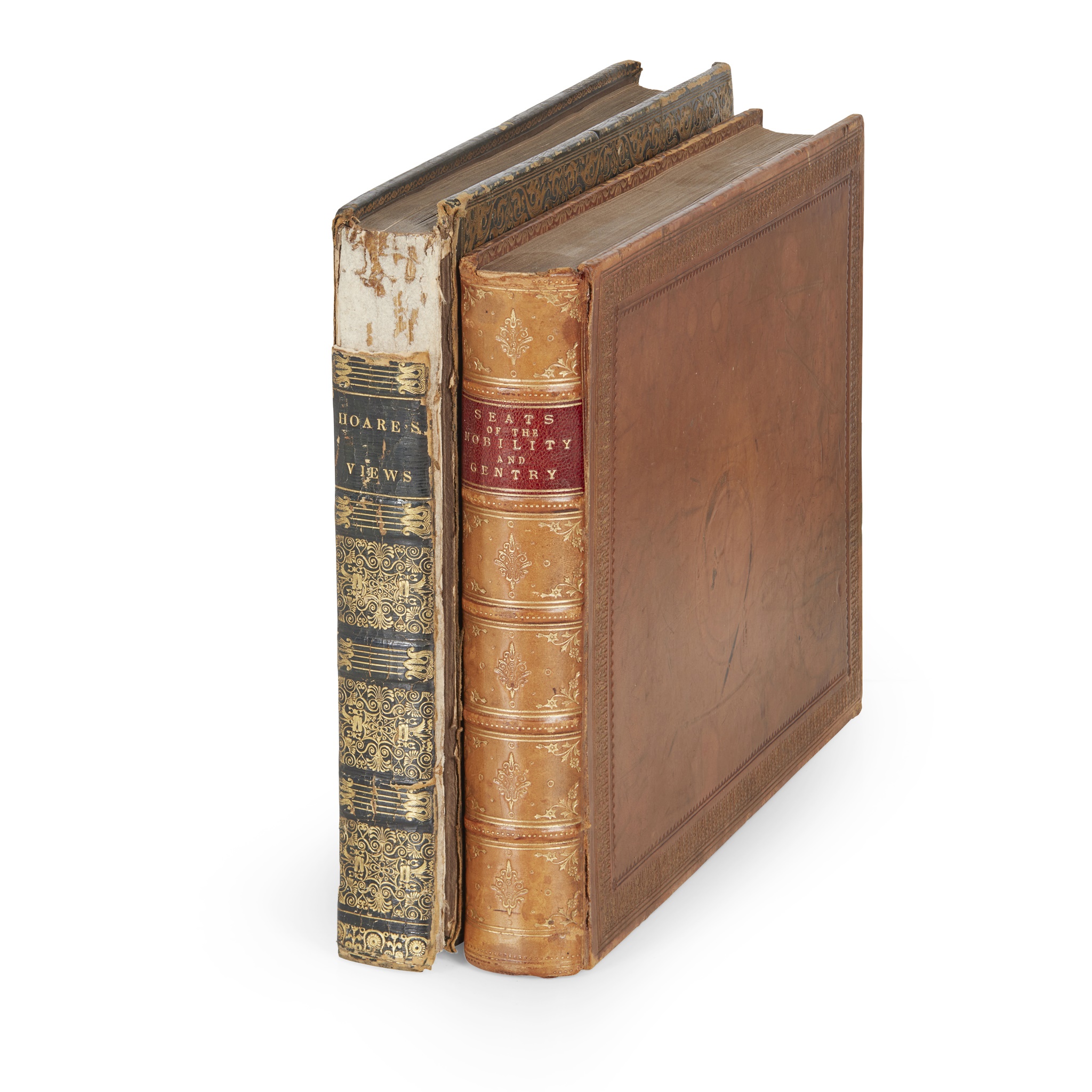 Angus, William. The Seats of the Nobility and Gentry in Great Britain and Wales, in a Collection of Select Views. London: W. Angus, 1787. Oblong 4to, (280 x 210mm), engraved title page and 63 plates engraved by Angus after Nattes, Wheatley, Turner & others, contemporary calf gilt, red morocco label, armorial bookplate of Charles James Lucas (2)