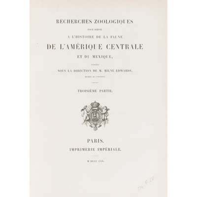 Recherches Zoologiques pour servir a l'histoire de la Faune de l'Amérique Centrale...Troisième Partie
