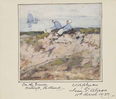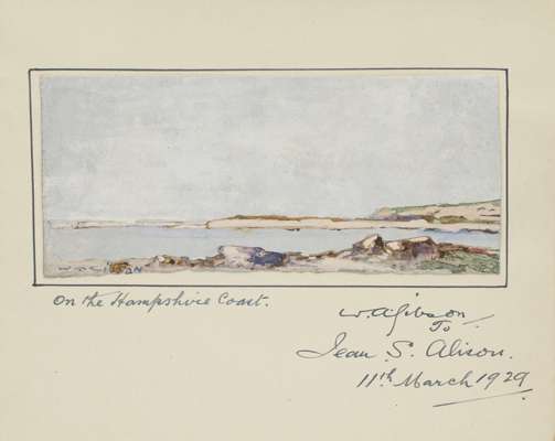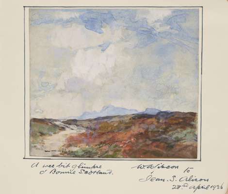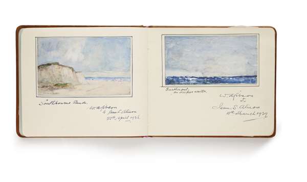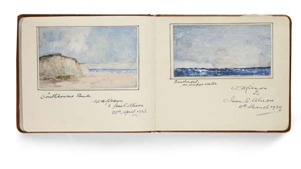 Signed, inscribed and dated 'To Jean S Alison 11th March 1929', pen and ink and watercolour, unframed, and nine others by the same hand within an autograph book embossed J.S.A. [Jean S. Alison], various sizes