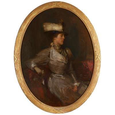 ELEGANT YOUNG LADY SEATED ON A CHAISE LONGUE