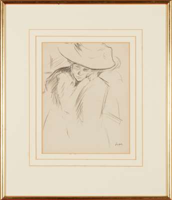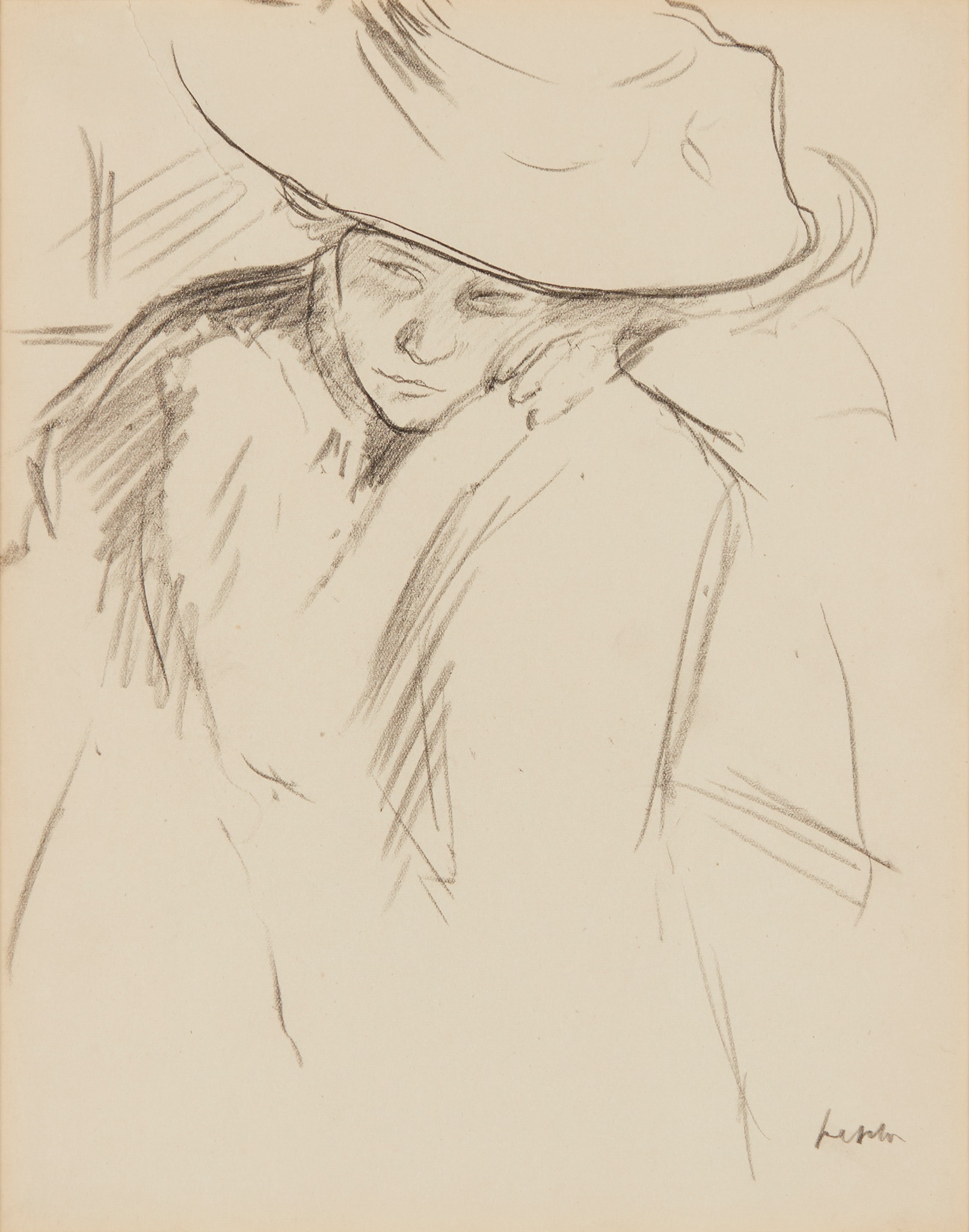 Signed, conté on buff paper