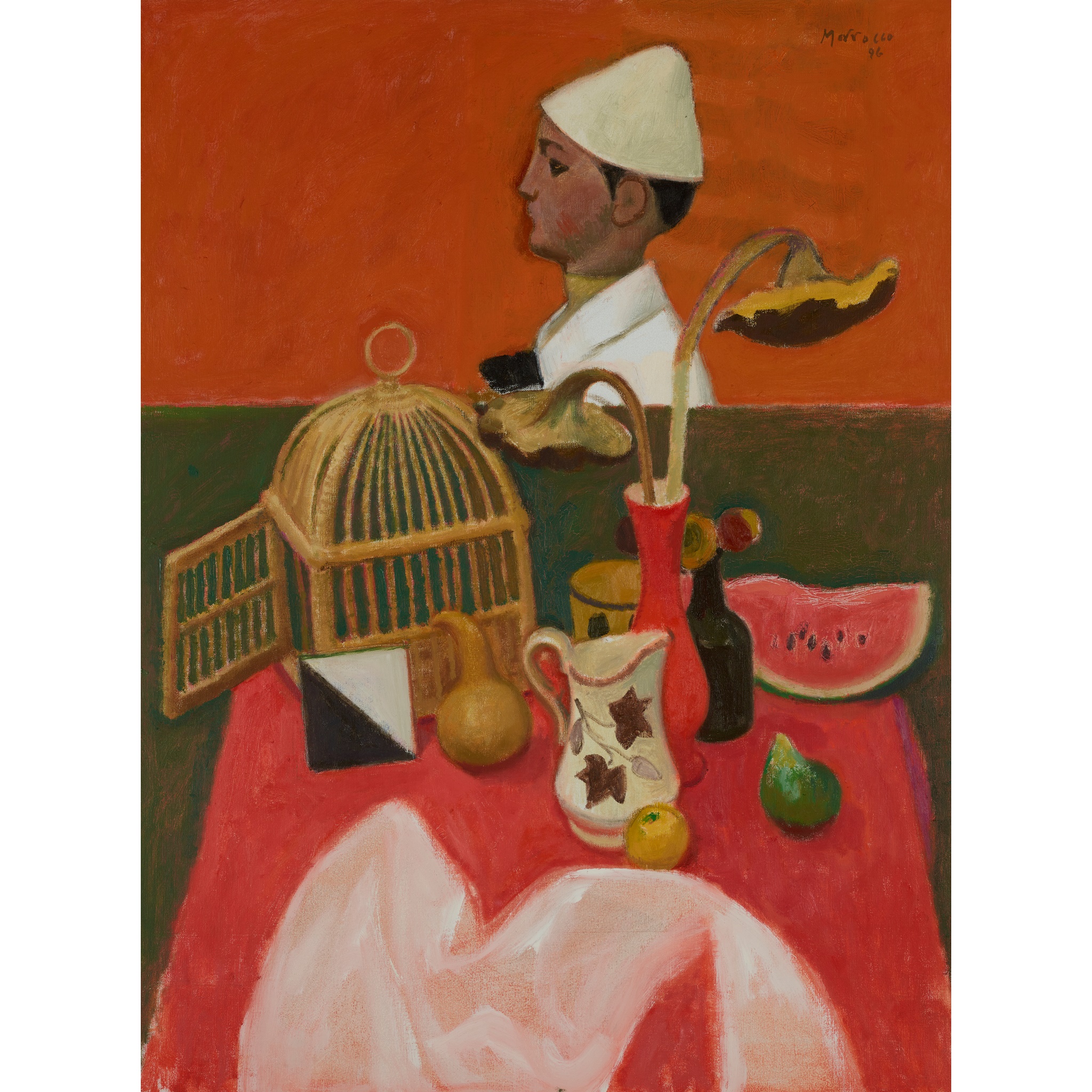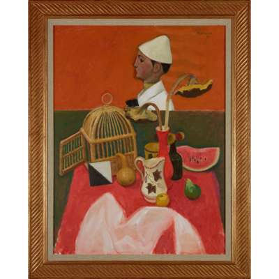 STILL LIFE WITH CLOWN AND BIRDCAGE