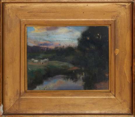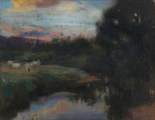 A RIVER LANDSCAPE AT DUSK