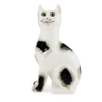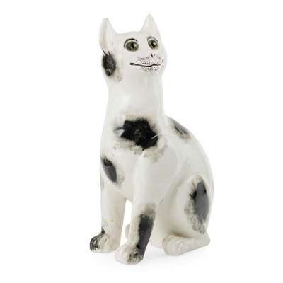 sponged black on white with applied green glass eyes, impressed WEMYSS WARE/ R.H.&S., printed retailer's stamp T. GOODE & CO.