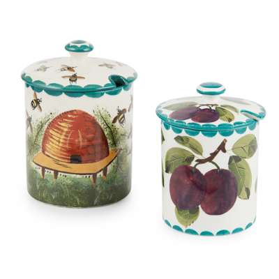 decorated by Joe Nekola, painted and impressed WEMYSS, 12cm high; together with a 'PLUMS' PRESERVE JAR & COVER, painted WEMYSS, 10.5cm high