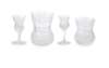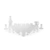 comprising twelve large tumblers, twelve smaller tumblers, a decanter with stopper, a jug, a pair of candlesticks, four small sherry glasses and eight tiny liqueur glasses