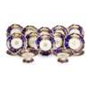 each piece painted with a central gilt medallion, and a Scottish landscape surrounded by a cobalt and gilt scroll border, comprising eighteen plates and a pair of tazza, stamped ENGLAND COALPORT A. D. 1750